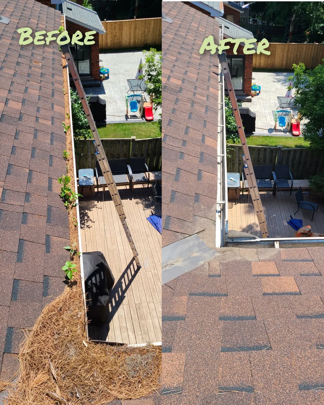 We clear leaves, twigs, moss, and built-up dirt from gutters, downspouts, and eavestroughs, restoring proper flow. -