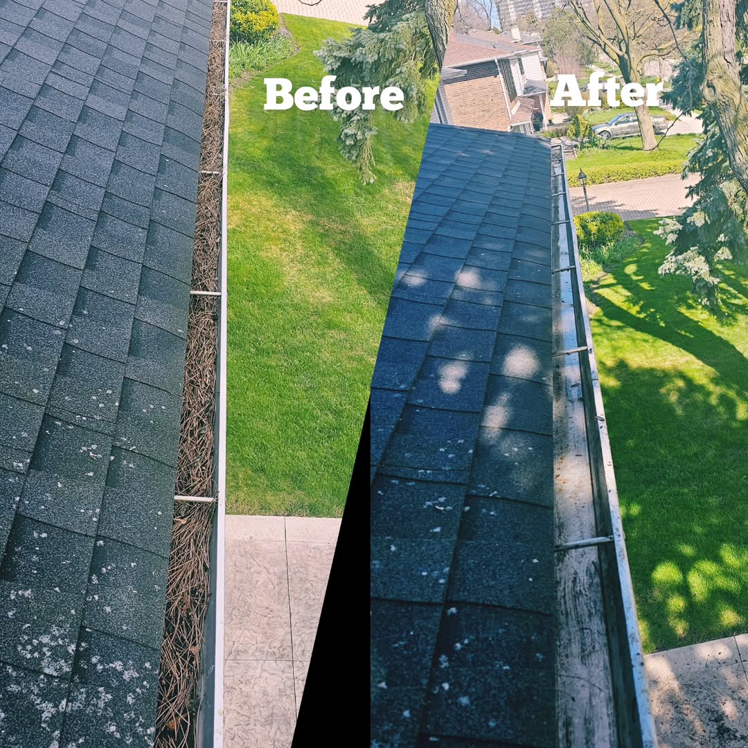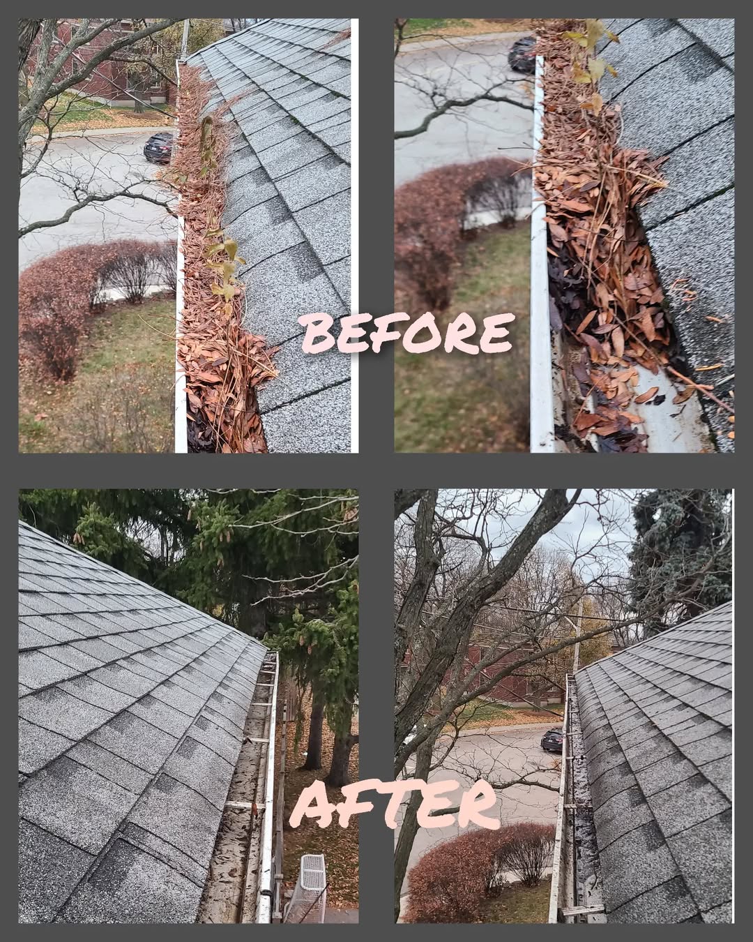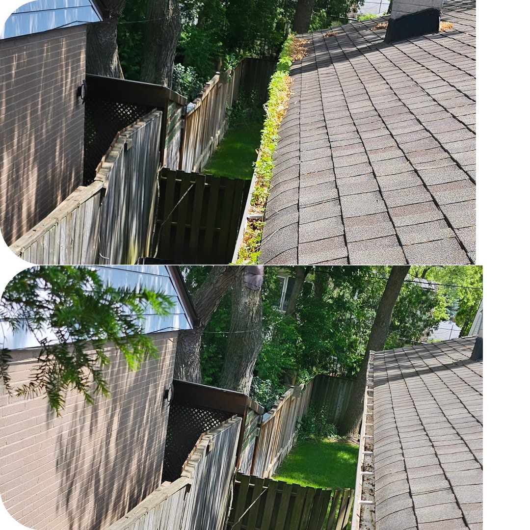 We clear leaves, twigs, moss, and built-up dirt from gutters, downspouts, and eavestroughs, restoring proper flow. -